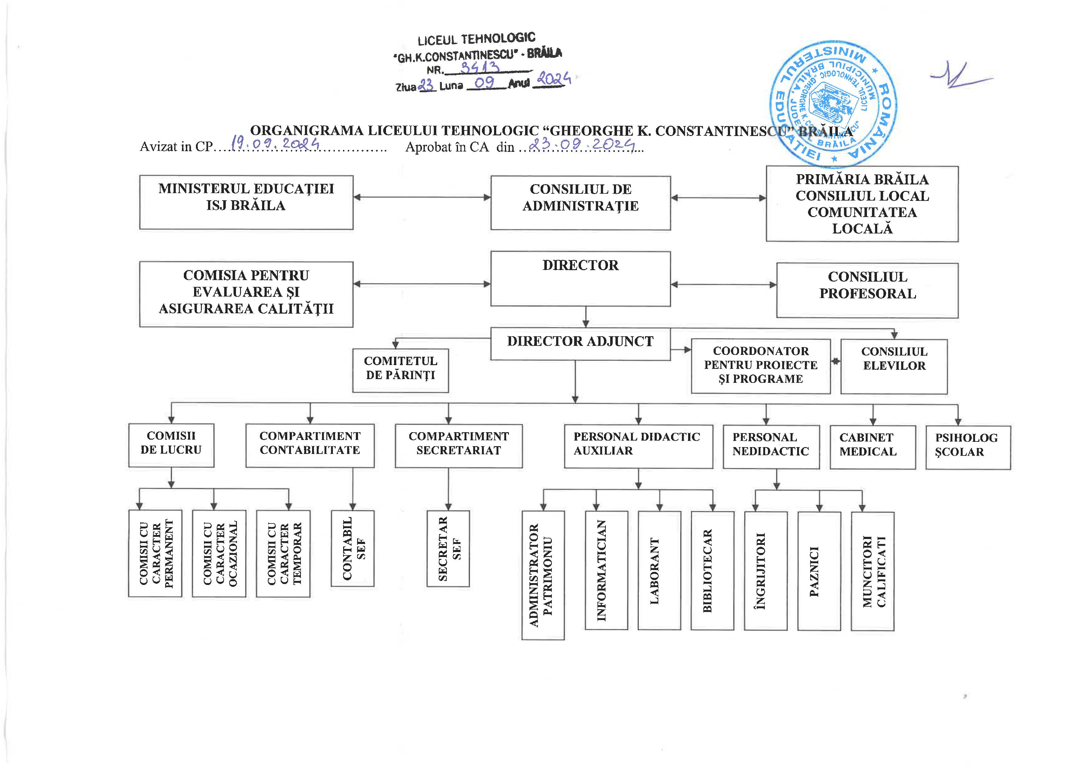Schema de organizare a Liceului Tehnologic "Gheorghe K. Constantinescu" Brăila.